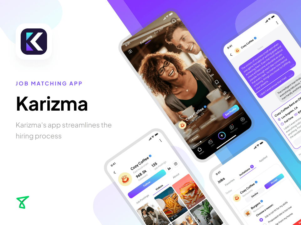 Karizma's app streamlines the hiring process by letting employers scroll through candidate profiles, review their CVs and experience, and connect via the messaging feature.